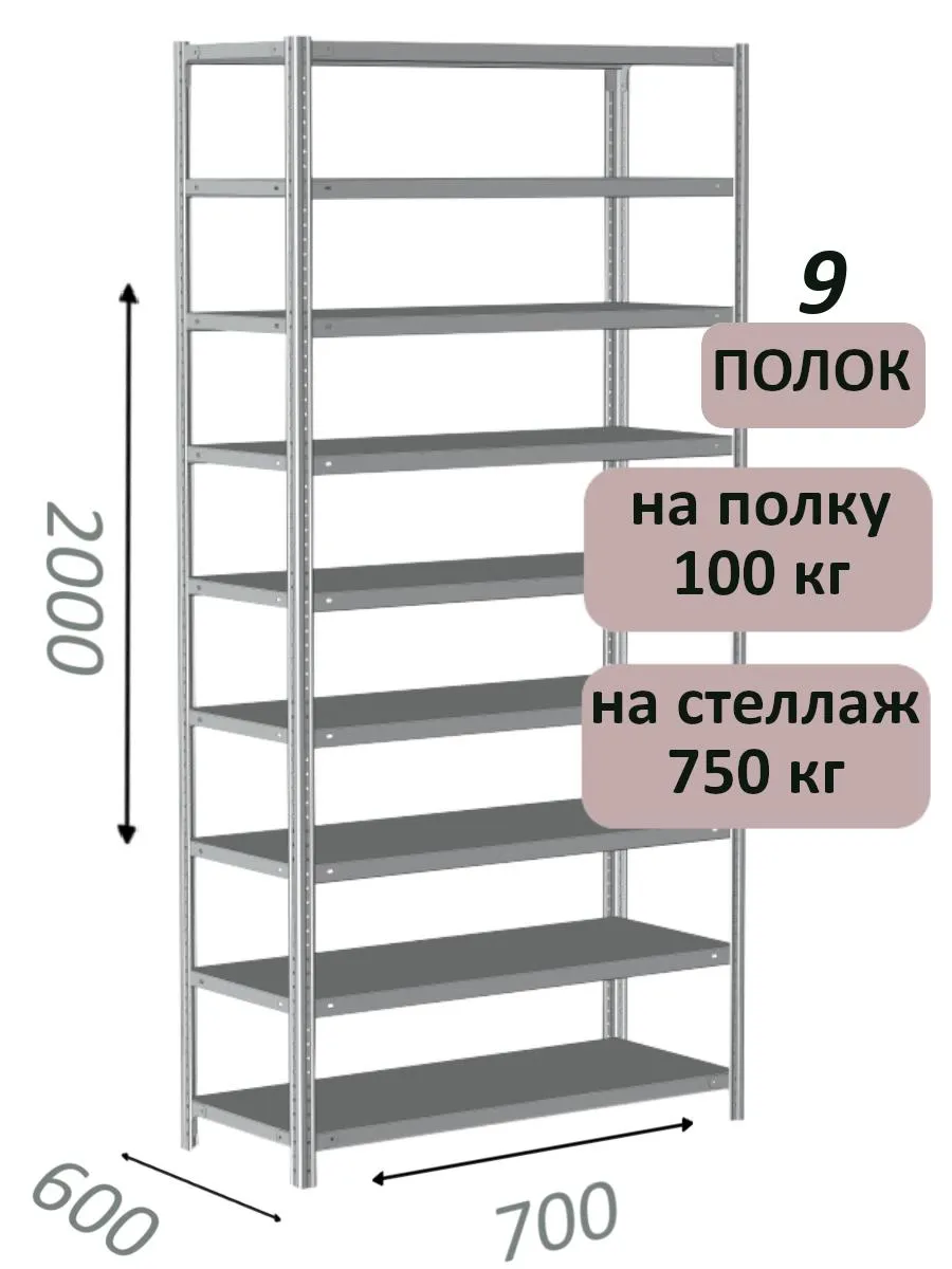 Чтобы уточнить цену и заказать доставку Стеллаж металлический полочный МС 2000х700х600, 9 полок, 100 кг на полку, светло-серый в , звоните по телефону или закажите обратный звонок.