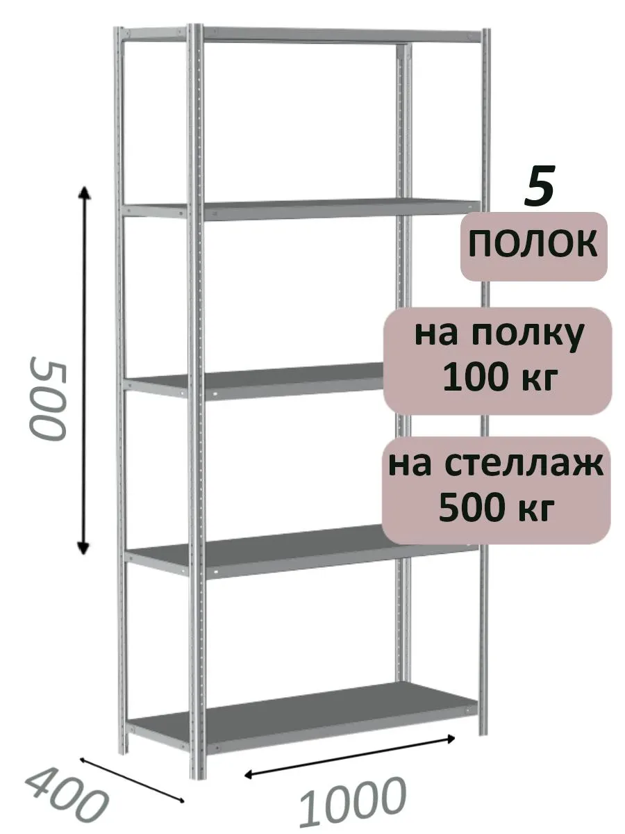 Стеллаж металлический полочный МС-500 500х1000х400, 5 полок, светло-серый