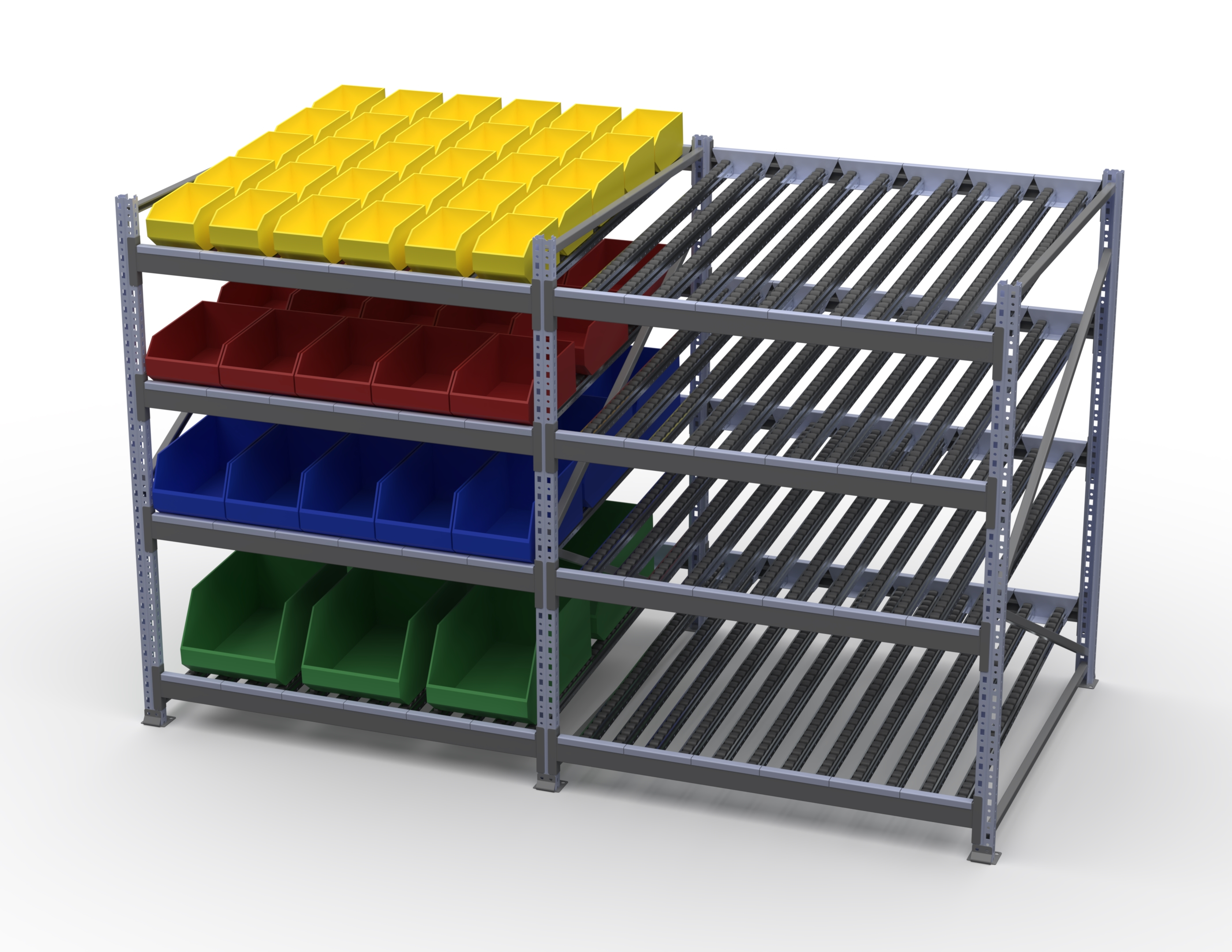 Гравитационные полки на фронтальные стеллажи — ускорение подбора штучных заказов