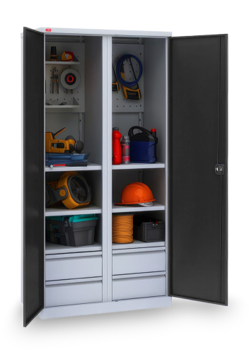 Двухсекционный инструментальный шкаф. Вариант возможной комплектации (инструменты на фото в комплектацию не входят)