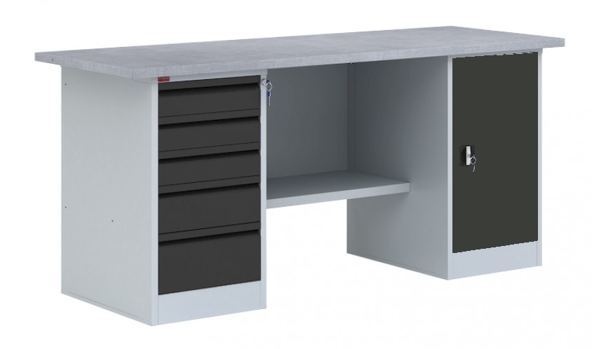 Верстак двухтумбовый (с тумбой и драйвером) - ВП 4 (Графит)